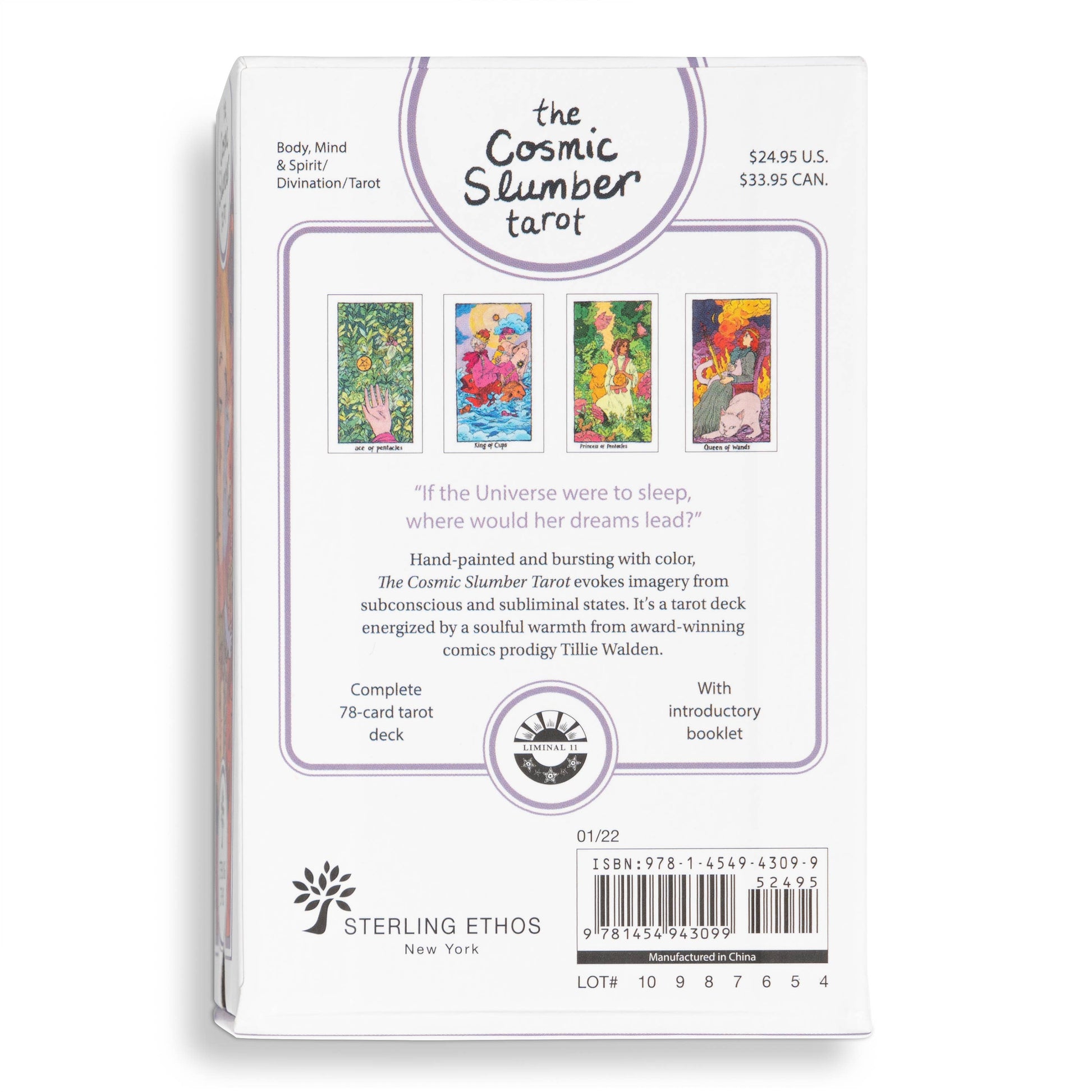 The multi-award winning artist and graphic novelist Tillie Walden brings her beautifully unmistakable style and soulful warmth to the world of tarot. Hand-painted and bursting with color, The Cosmic Slumber Tarot evokes images recalled from collective dreams and the depths of the subconscious. Tillie's style, influenced by Manga and the art of Studio Ghibili, brings a fresh, youthful energy to the tarot. The Cosmic Slumber Tarot will strongly appeal to her legion of fans in the comics world and ever growing millennial audience of the tarot community. Kit; 3.5 x 5.25 inches; 56 pages.