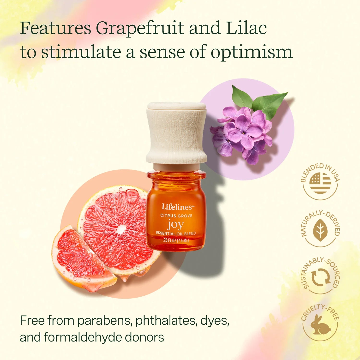 Lifelines blends contain 100% pure essential oils & natural botanicals with patent pending Precision Pump for easy dispensing. Our Citrus Grove collection evokes juicy bursts of ripe fruit& sun-dappled citrus trees. Citrus Grove: Calm blend features bergamot & vanilla to foster a mood of tranquility.