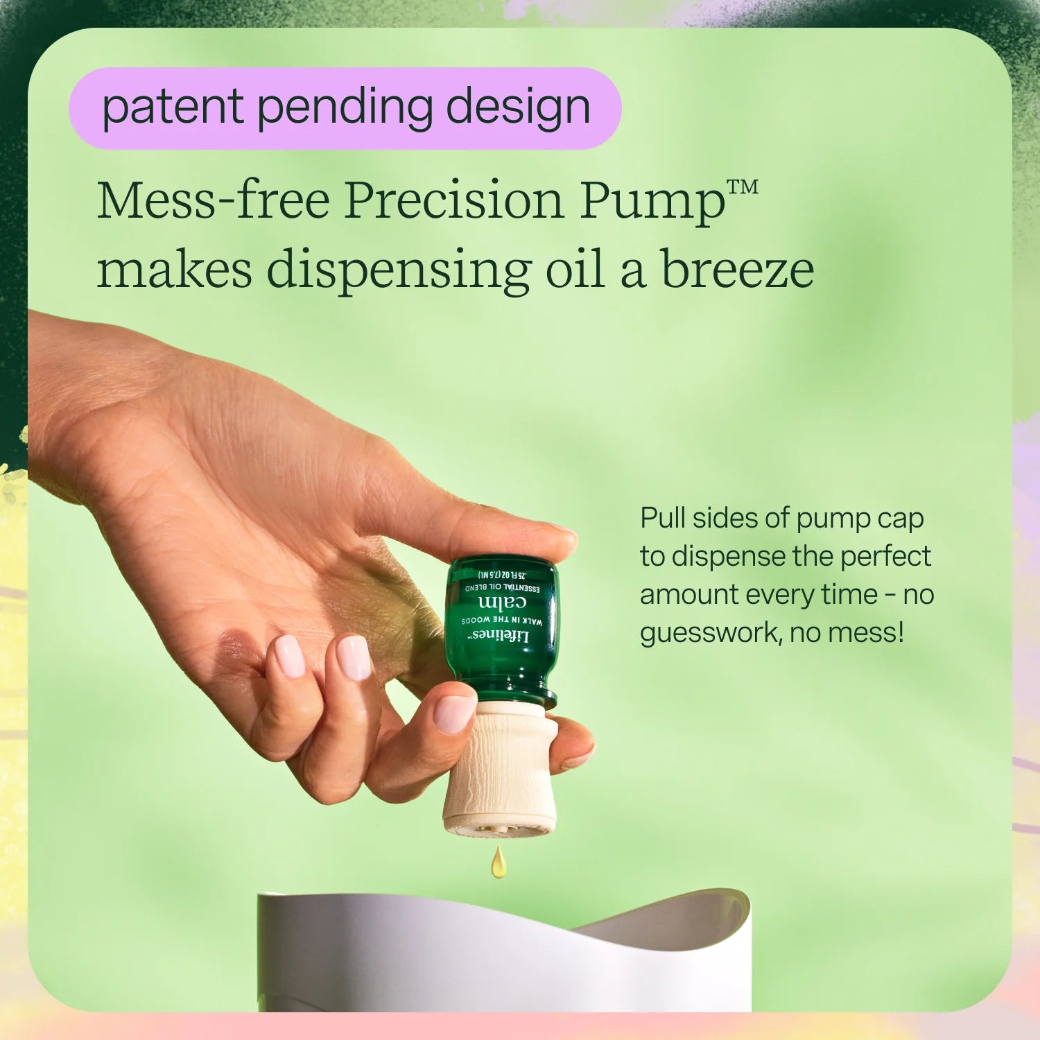 Lifelines blends contain 100% pure essential oils& natural botanicals with patent pending Precision Pump for easy dispensing. Walk in the Woods collection evokes rich, verdant forests & velvety moss underfoot. Walk in the Woods: Calm blend features cedarwood & violet to foster a mood of tranquility.