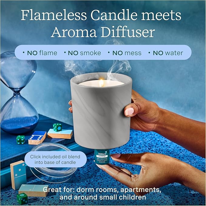 Great for dorm rooms, apartments, and homes with young children and pets. Diffuses aroma for 50+ hours on a single charge; USB charger included. Blend is free from parabens, phthalates, dyes, and formaldehyde