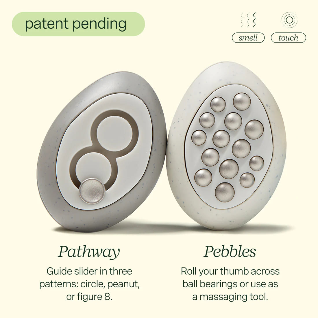 Set of 2 fidget stones with aroma to help you remain calm & present. Grounding Stones, inspired by riverbed rocks, have been thoughtfully designed to encourage repetitive motion that focuses your attention & quiets your mind. Perfectly portable. Lanyard & 1 Lifelines Essential Oil Blend included.